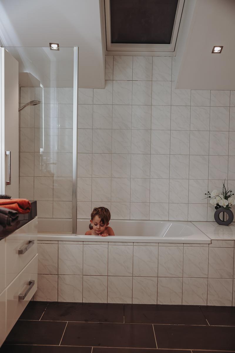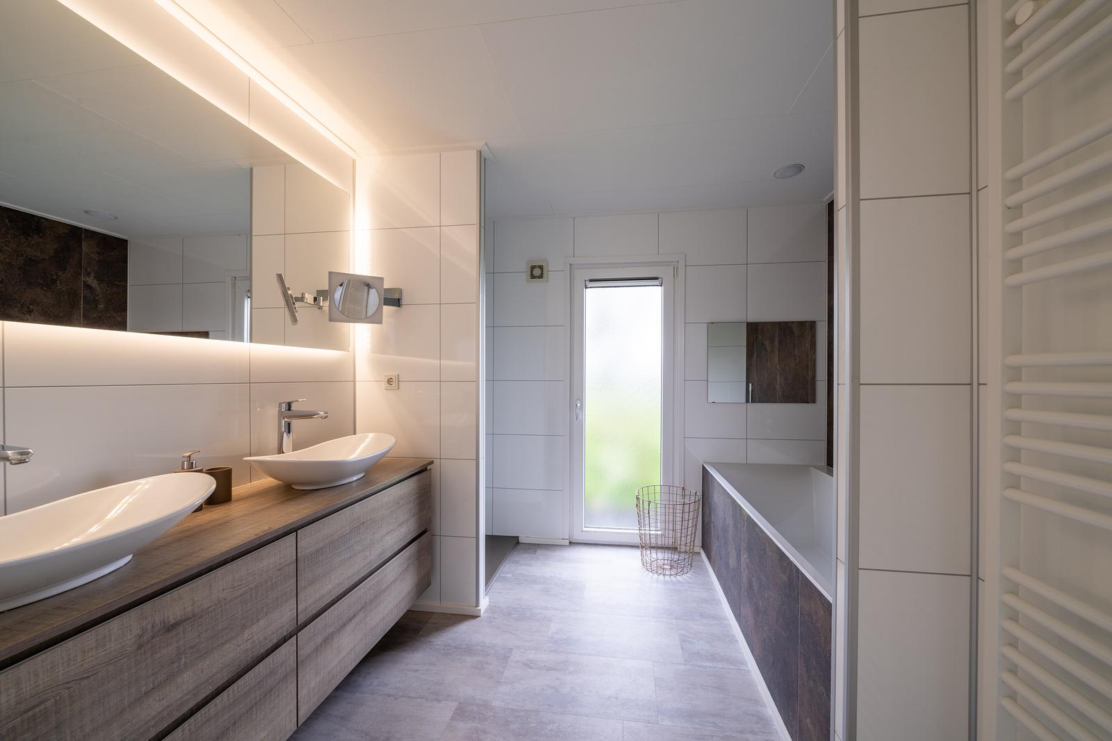 - Badkamer met douche en bubbelbad